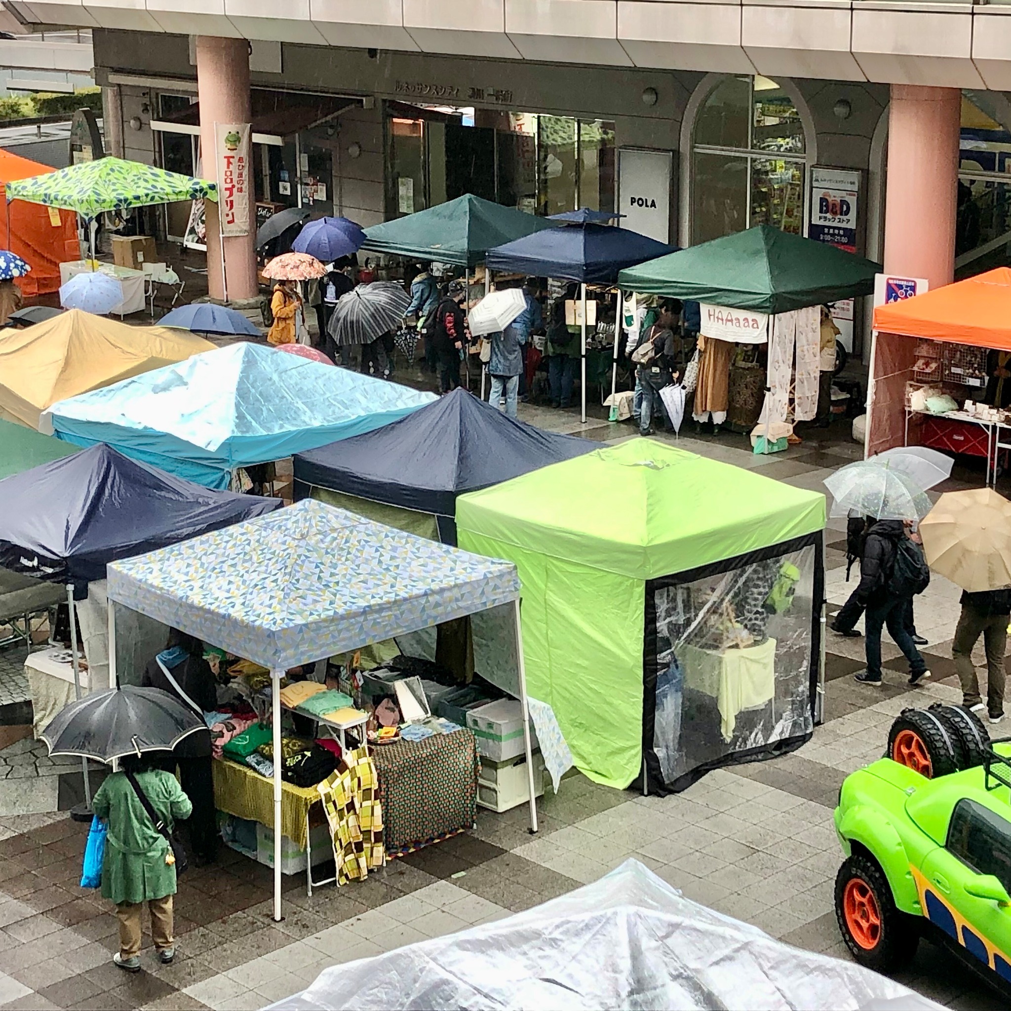 雨天の中、傘やカッパ姿で沢山の方々に立ち寄っていただいて、更にいろんな方々に山盛り差し入れオヤツまで貰ってしまい、脳みそ爆発しそーに嬉しい日ぃでした!